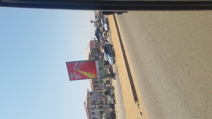 The image depicts a daytime street scene in Nyanya, Nigeria