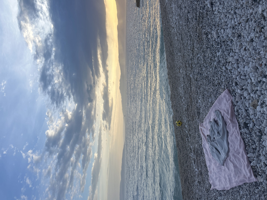 - "The image displays a pebble beach scene in Grad Rijeka, Croatia, observed during either sunrise or sunset" by FM-os22t2, licensed under CC BY 4.0