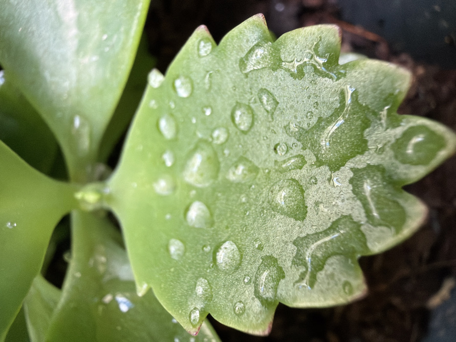 - "A close-up, high-angle photograph depicts a vibrant green plant leaf, its surface covered with numerous water droplets, located in Tel-Aviv, Israel" by FM-u366Z2, licensed under CC BY 4.0