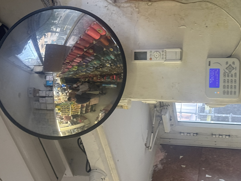 - "The image displays a convex security mirror mounted on a light-colored, worn interior wall in a commercial establishment in Tel-Aviv, Israel" by FM-wUaYc2, licensed under CC BY 4.0