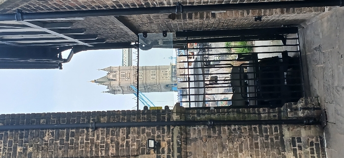 - "The image captures a narrow passageway in the City of London, United Kingdom, framed by brick walls, looking towards Tower Bridge" by FM-rURyH3, licensed under CC BY 4.0