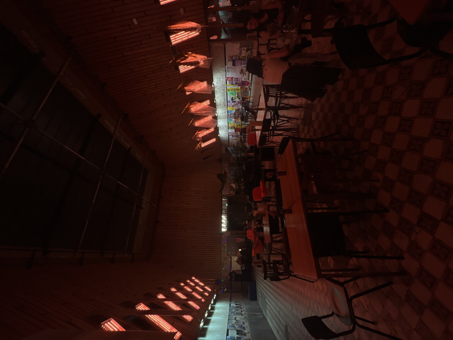 - "This interior photograph captures a large, high-ceilinged communal space in Roubaix, France, characterized by a dominant warm, reddish-orange illumination" by FM-2aYl13, licensed under CC BY 4.0