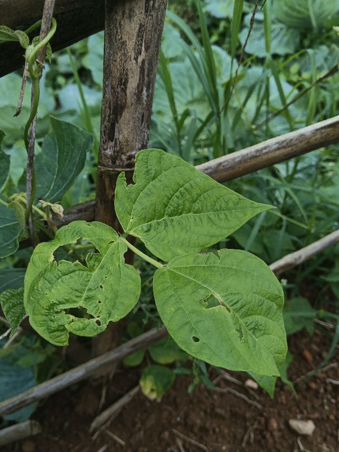 - "A close-up, eye-level outdoor scene in Bình Hải, Vietnam, depicts a section of a plant growing on a bamboo support structure" by FM-cuX0C2, licensed under CC BY 4.0
