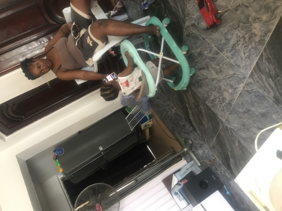 The image depicts an indoor domestic scene, presumptively in Akure, Nigeria
