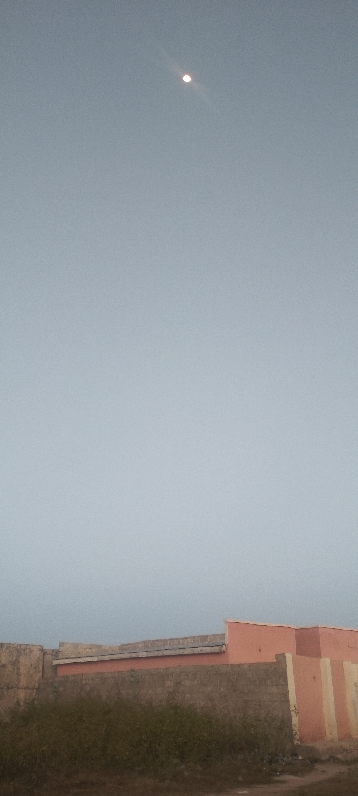 A daytime scene under a hazy sky with a bright, small sun