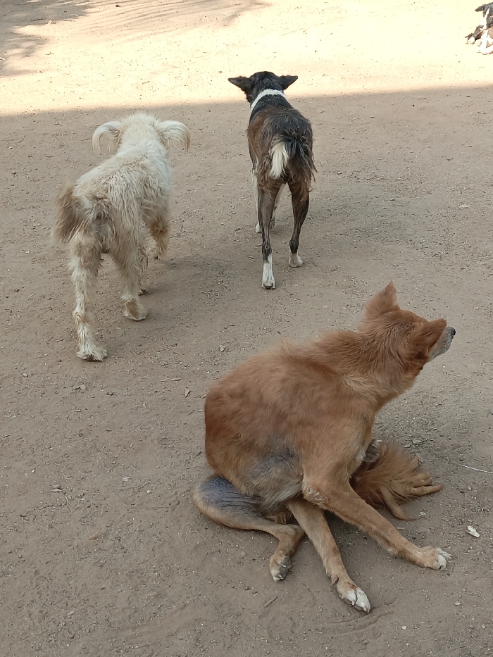 - "The scene, located in Akwanga, Nigeria, features three domestic dogs on a sunlit, unpaved dirt ground" by FM-5D8LB2, licensed under CC BY 4.0