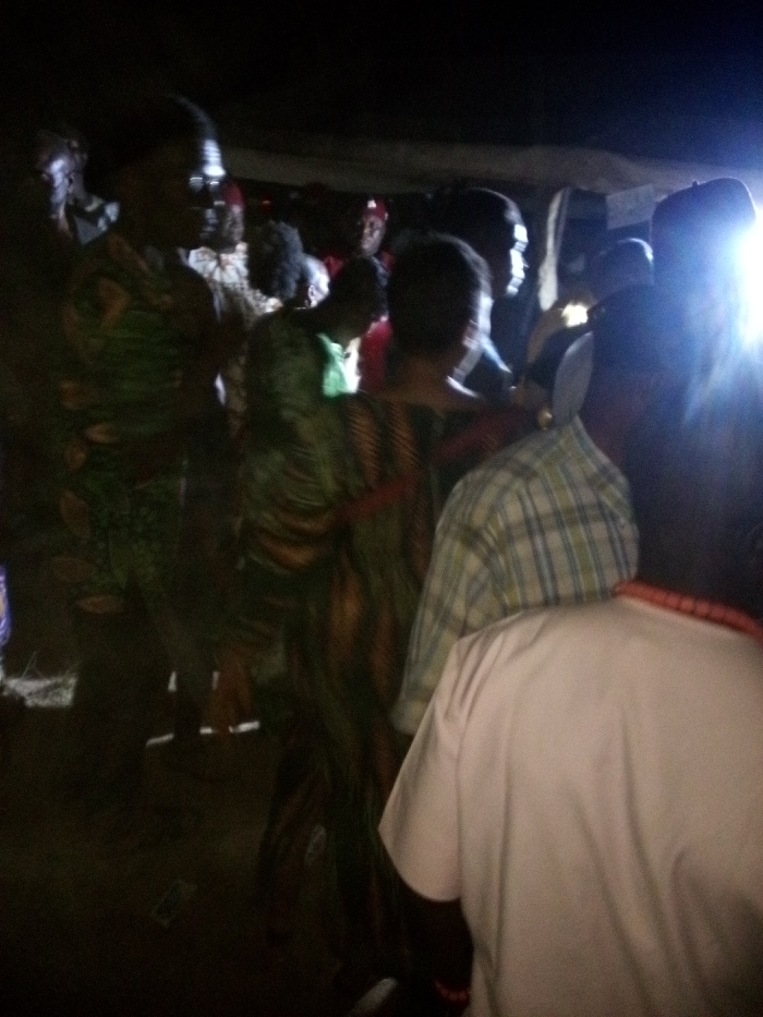 The image displays a densely packed indoor or semi-enclosed gathering in Barden Yana, Nigeria, under low-light conditions