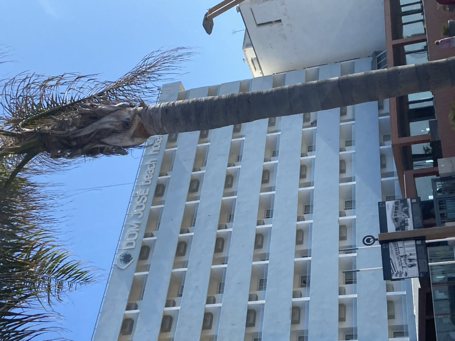- "The image presents an exterior view of the Dom Jose Beach Hotel in Quarteira, Portugal, under a clear, bright blue sky" by FM-H9ki03, licensed under CC BY 4.0