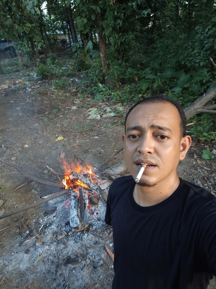 An adult male is captured in a self-portrait within an outdoor setting in Jurong Pante, Indonesia