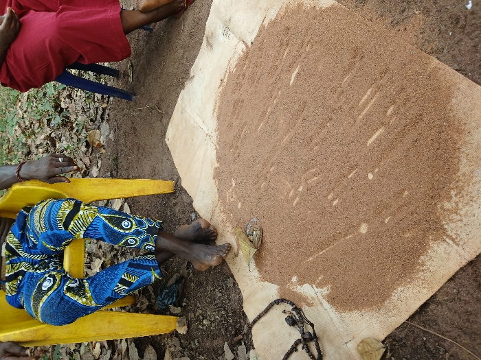 - "A scene in Idah, Nigeria, depicts an outdoor setting with two individuals partially visible, seated near a rectangular, light-colored fabric sheet spread on dark earth" by FM-Oh2n63, licensed under CC BY 4.0