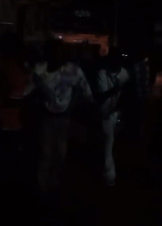A group of people move about in the dark. The scene is poorly lit. Details about the people and their actions are unclear due to the darkness and blurriness. The camera is likely held by someone moving. The video was recorded with an Infinix HOT 12 PLAY phone.