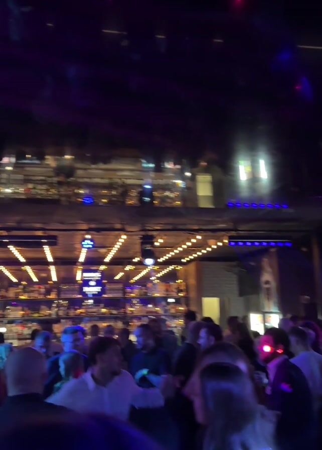 crowded bar or nightclub with people socializing and dancing