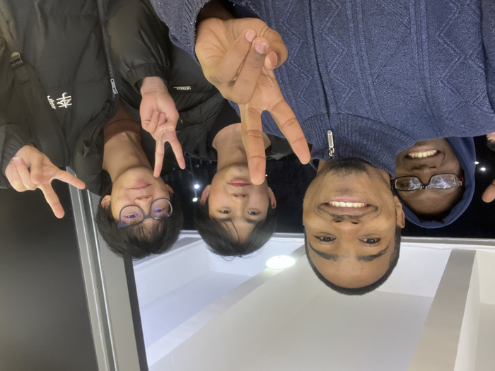 This image depicts a selfie of four male individuals taken at night in Jiangjin, China