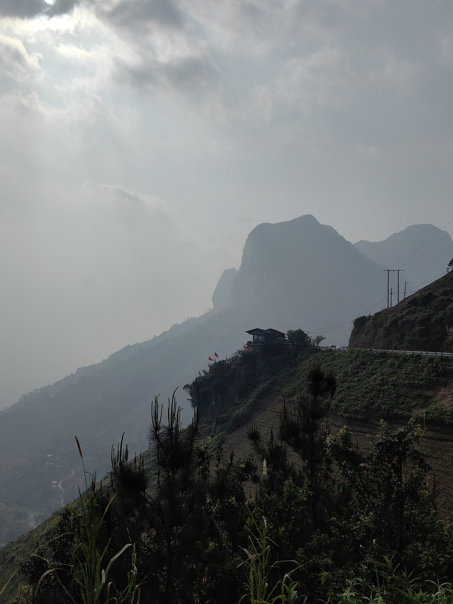 - "A landscape photograph captures a scene in Mèo Vạc Commune, Vietnam, under a sky obscured by overcast, hazy conditions" by FM-gnqSa2, licensed under CC BY 4.0