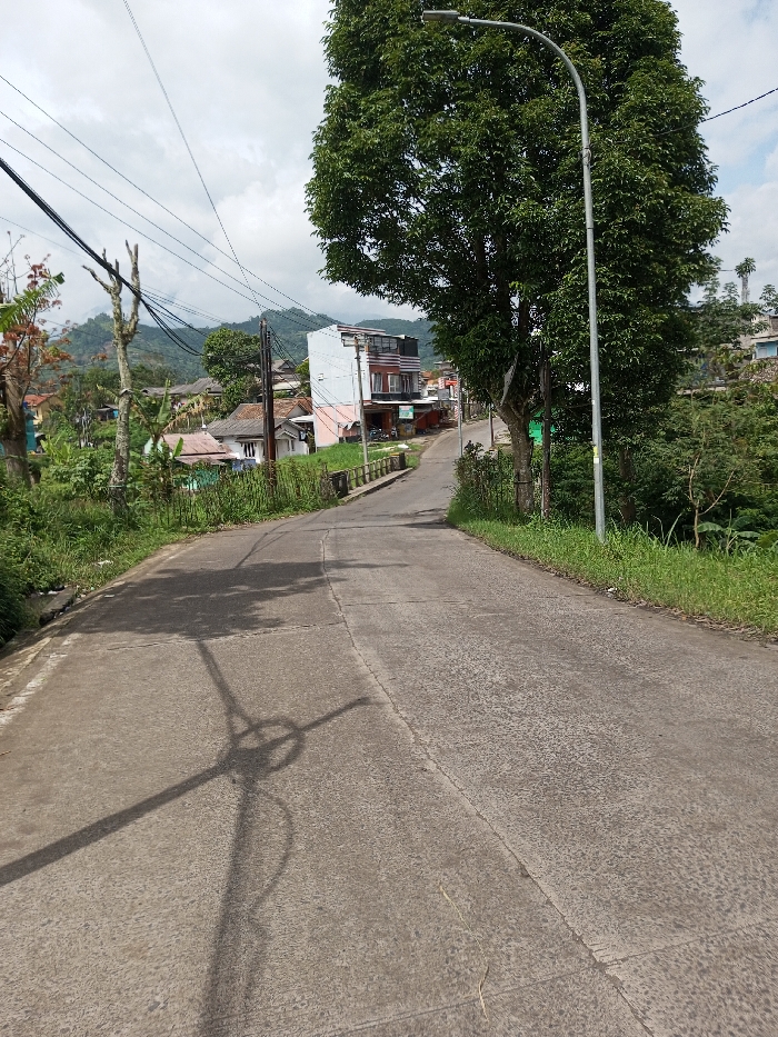 The image depicts a concrete road ascending through a residential and vegetated area in Ariyalai, Sri Lanka