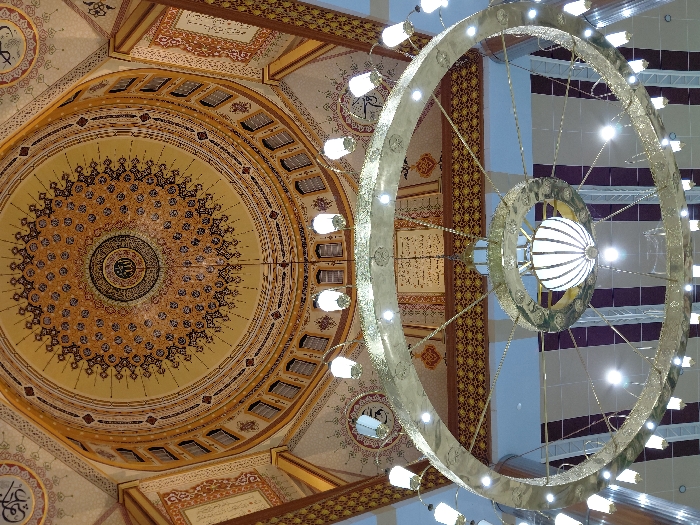 - "This image captures the elaborate interior of a mosque in Langsa, Indonesia, looking upwards towards the dome and a large suspended chandelier" by FM-ttalh2, licensed under CC BY 4.0