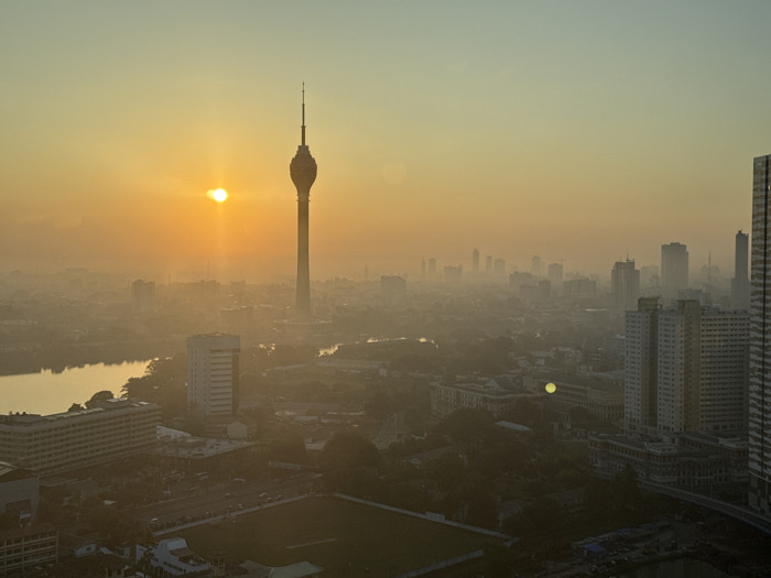 - "The image presents an elevated panoramic view of Colombo, Sri Lanka, during either sunrise or sunset, characterized by pervasive atmospheric haze" by FM-xGZ4l2, licensed under CC BY 4.0