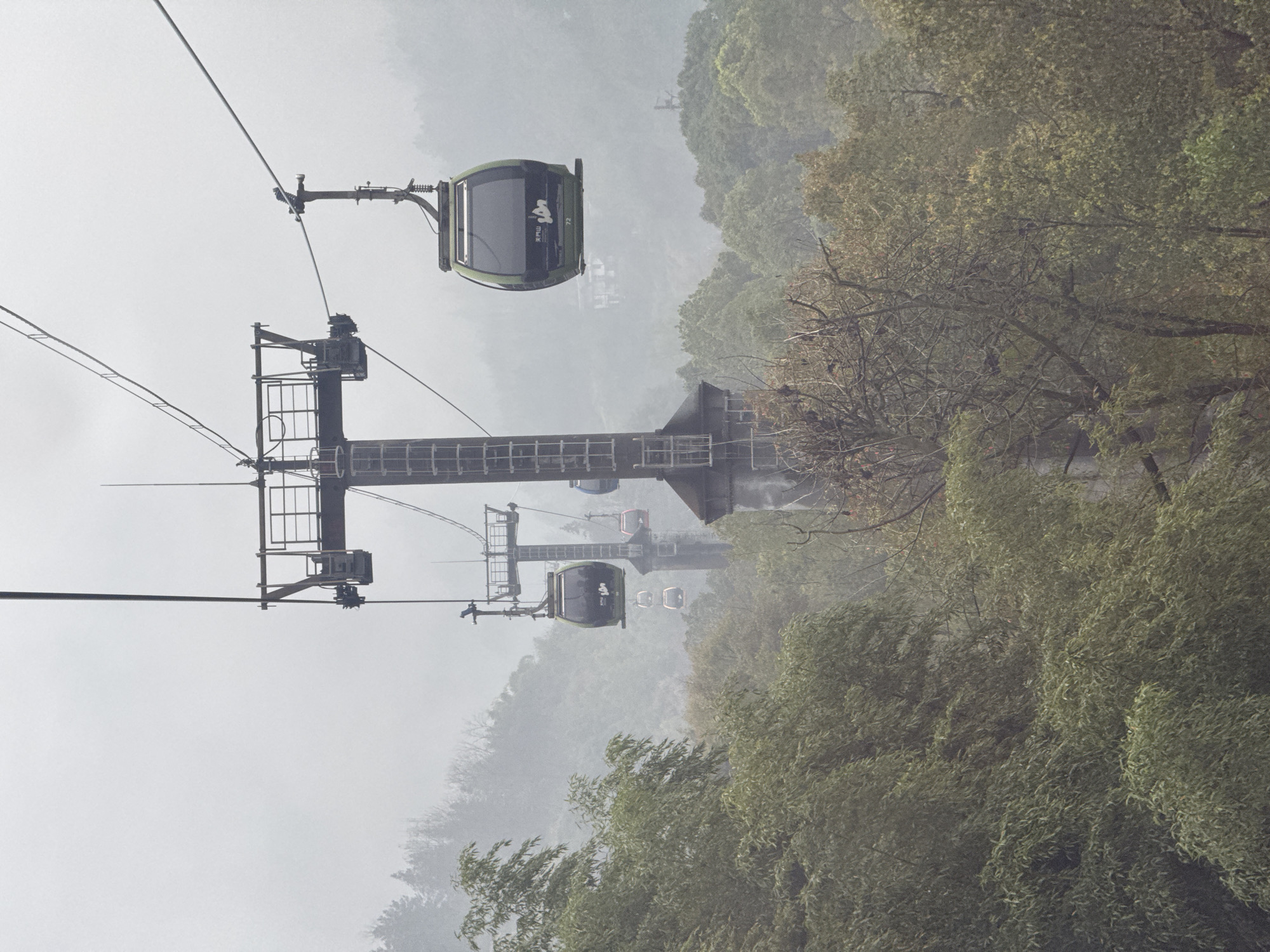 - "The image displays an active aerial gondola system traversing a densely forested mountainous landscape under conditions of heavy mist or fog at Tianmen Mountain, located within Yongding District, Zhangjiajie City, Hunan Province, China" by FM-7eaFY2, licensed under CC BY 4.0
