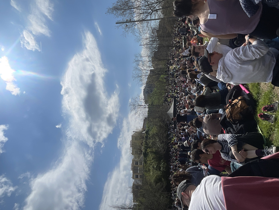 - "The image displays a large outdoor gathering of several hundred individuals situated on a grassy slope in Terrassa, Spain" by FM-mNSRX2, licensed under CC BY 4.0