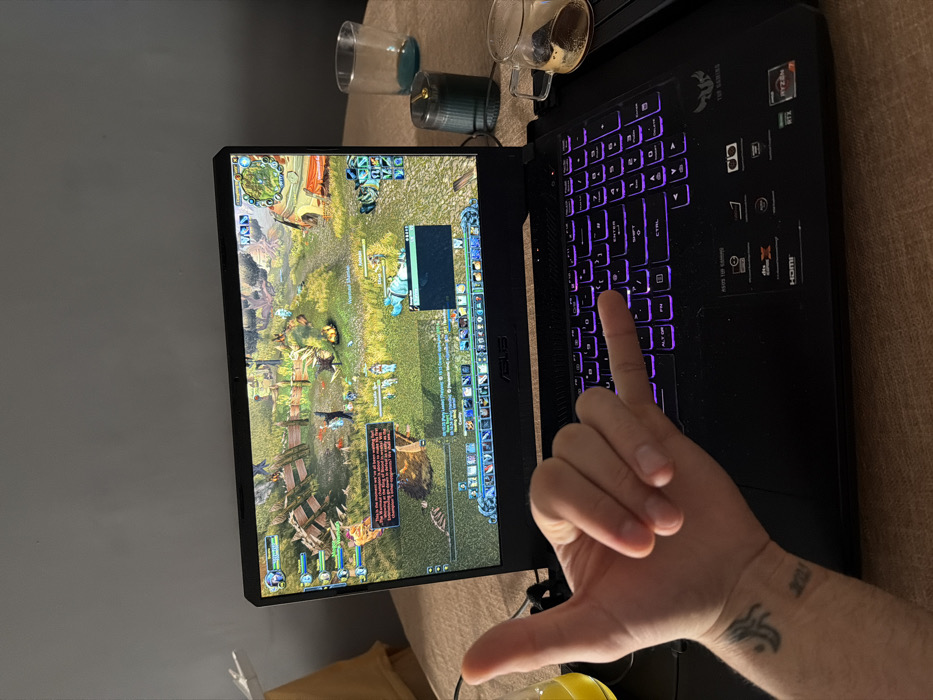 - "An indoor scene in Saint Paul's Bay, Malta, features a black ASUS ROG Strix G gaming laptop resting on a light-brown, textured table surface" by FM-P8DiG3, licensed under CC BY 4.0