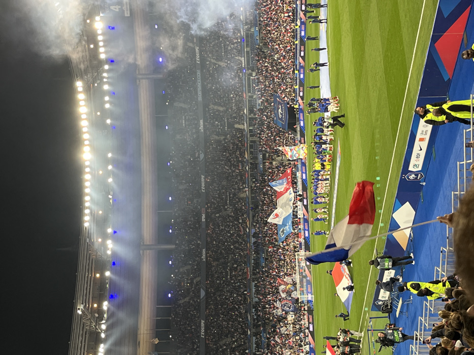 The image is taken at Stade de France, a multi-purpose stadium in Saint-Denis, France