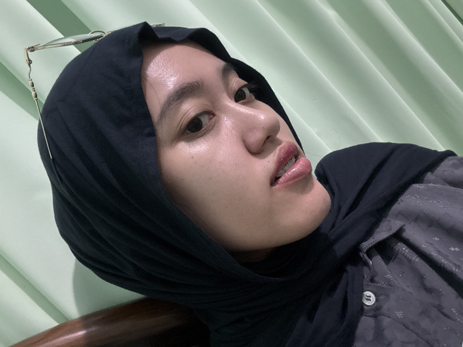 - "An angled, close-up portrait in Patrang, Indonesia, features a person, likely a young woman, wearing a black hijab and a dark grey button-up shirt with a subtle, lighter-toned pattern" by FM-2HdLF2, licensed under CC BY 4.0