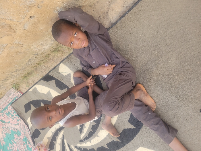 Two young male children are depicted outdoors in Sabojibi, Nigeria