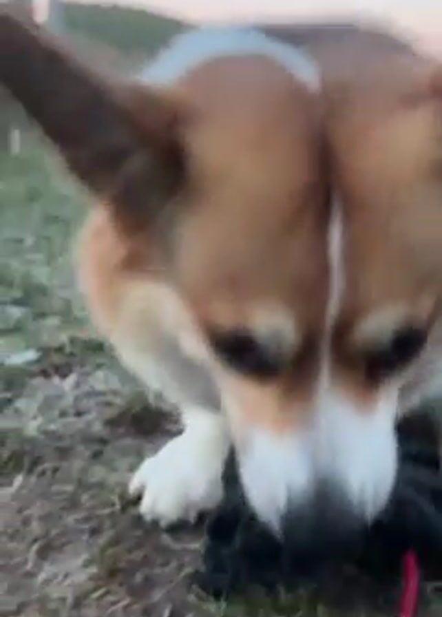 - "dog, likely a Corgi, playing with a piece of black material in a grassy outdoor setting" by FM-4GKkh1, licensed under CC BY 4.0