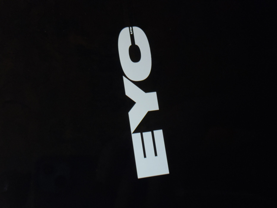 The image displays a white, bold, sans-serif textual logo 'EYC' against an untextured, uniformly black background