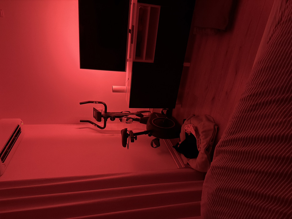 - "The scene depicts an interior room within a residence in Helmond, Netherlands, illuminated predominantly by an intense red light source, casting a crimson hue over all visible surfaces" by FM-vUM0b2, licensed under CC BY 4.0