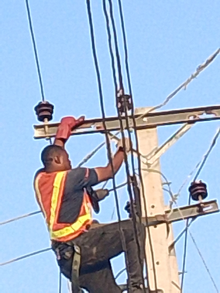 - "An adult male, identified as a utility worker, is depicted climbing or working on a utility pole in Adankolo, Nigeria" by FM-ShLue2, licensed under CC BY 4.0