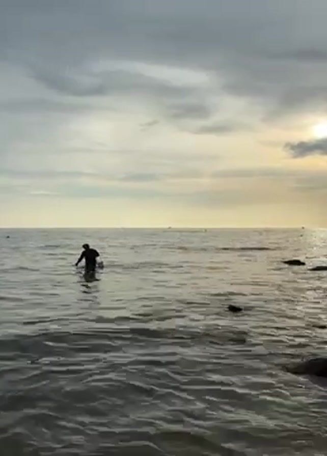 man wading into the ocean