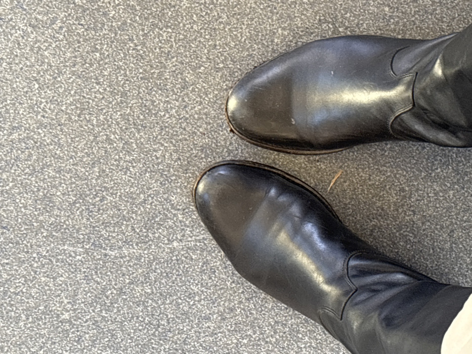 - "A top-down view shows two black leather boots on a gray speckled surface" by FM-NtAeD2, licensed under CC BY 4.0