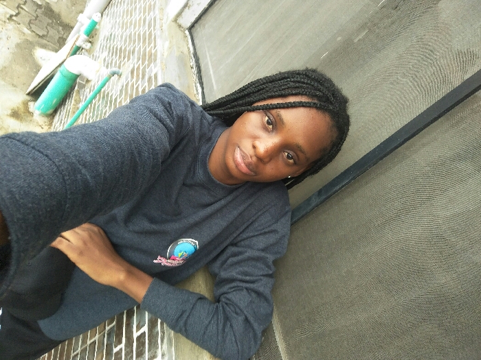A young Black female is depicted in a tilted selfie photograph, captured in Iranla, Nigeria