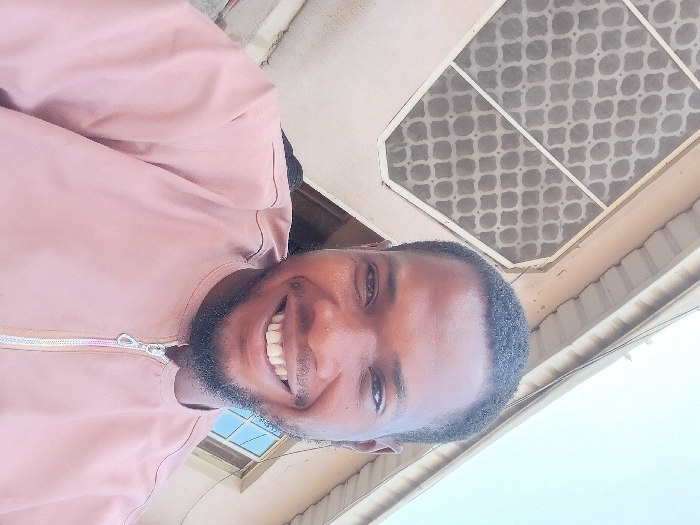A smiling man with a beard, wearing a pink shirt with a zipper, poses for a selfie. He is indoors, evident by the ceiling fixture with a patterned cover. A window can be seen in the background, providing natural light. His close-up shot captures his bright smile and youthful appearance.