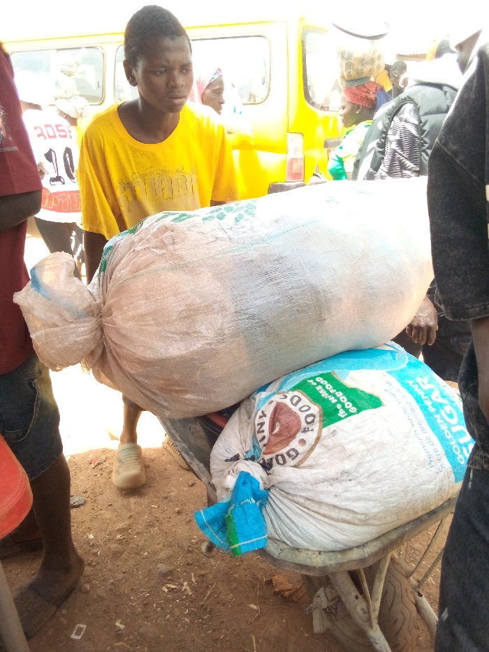 The scene is located in Gana Daji, Nigeria, depicting an outdoor market or street environment