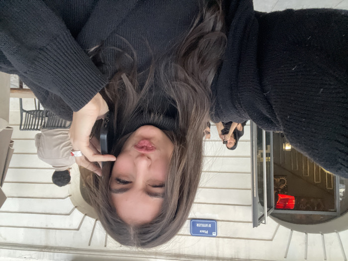 - "The image displays a young woman in a selfie-style composition, situated outdoors in Place d'Aviler, Montpellier, France" by FM-Nyolm2, licensed under CC BY 4.0