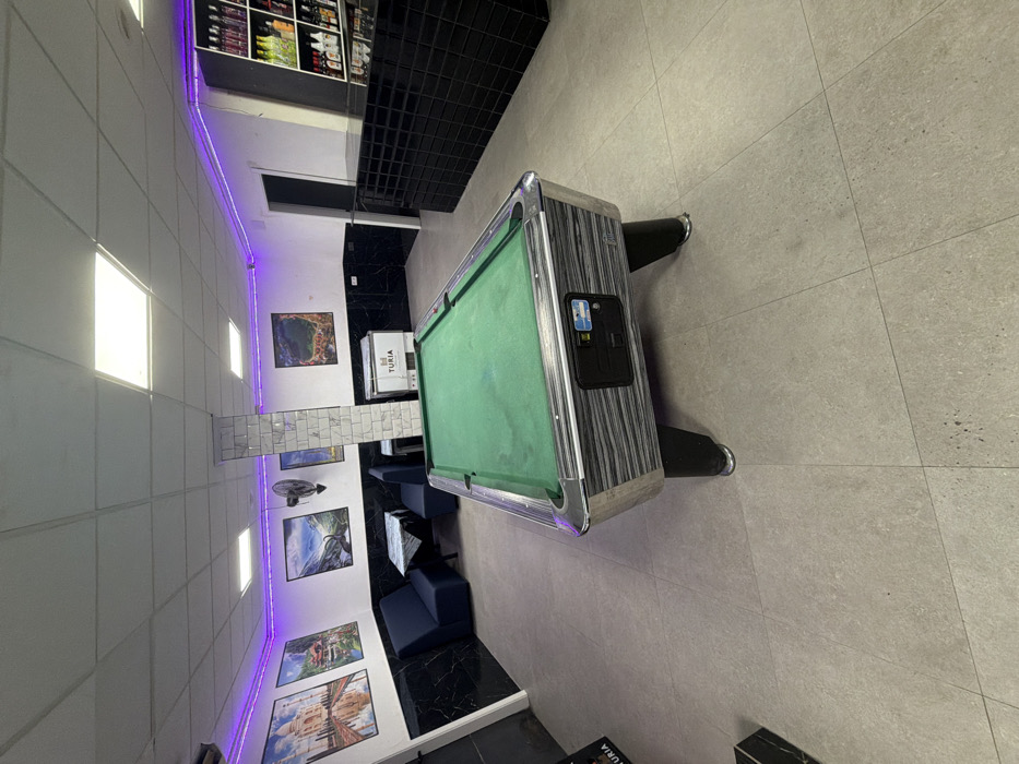 This image depicts the interior of a recreation room or bar located in Grau I Platja, Spain
