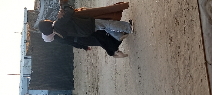 - "The image captures three individuals walking on a dirt path within a temporary settlement in Khan Yunis, Palestinian Territory" by FM-INiU52, licensed under CC BY 4.0