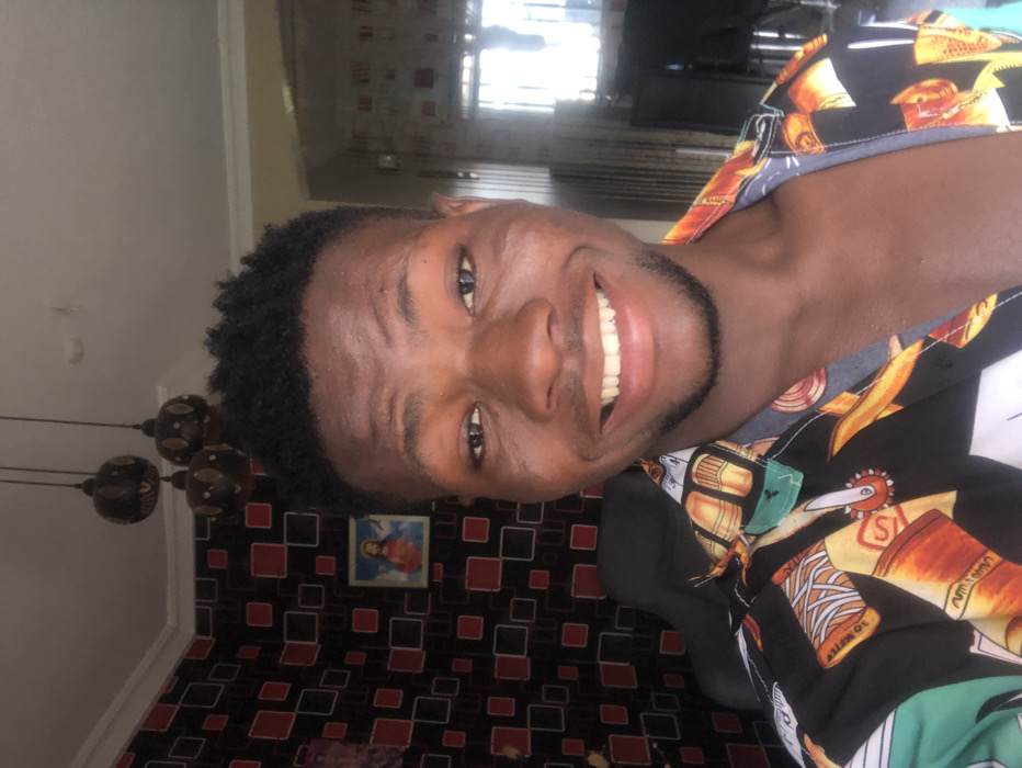 A young adult Black male, estimated to be in his mid-20s, is captured in a close-up, chest-up shot within an indoor setting in Aiyetoto-Asogun, Nigeria