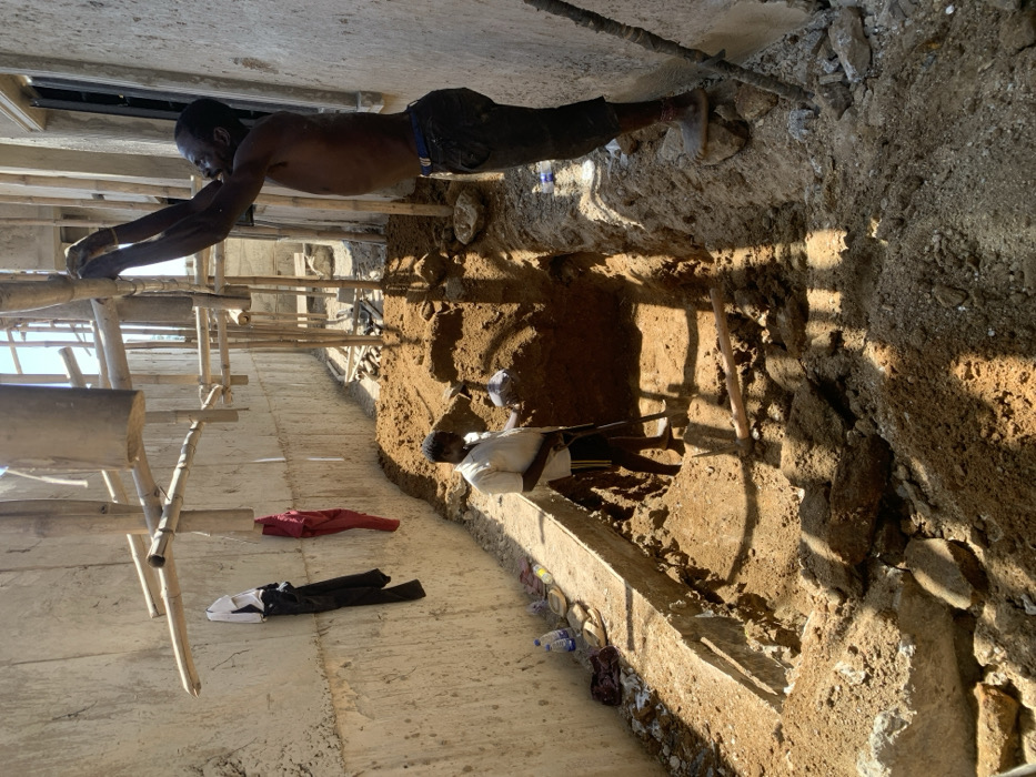 - "An outdoor construction scene in Abuja, Nigeria, depicts two dark-skinned men engaged in excavation and scaffolding work under bright sunlight" by FM-48pi93, licensed under CC BY 4.0