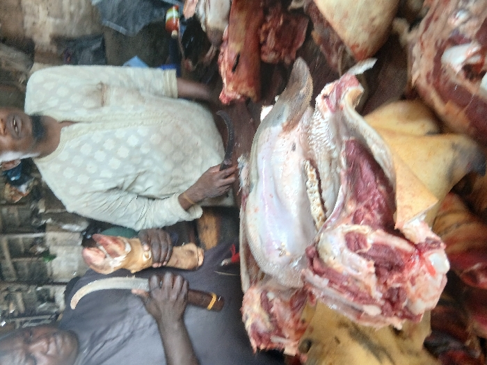 - "The image portrays a butcher stall in Kofar Mazugal, Nigeria, featuring two men and various raw meat cuts" by FM-uA35C3, licensed under CC BY 4.0