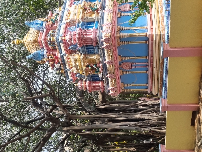 - "This image depicts a vibrant, multi-tiered Hindu temple structure situated next to a large banyan tree in Puttaparthi, India" by FM-Qmj6l1, licensed under CC BY 4.0