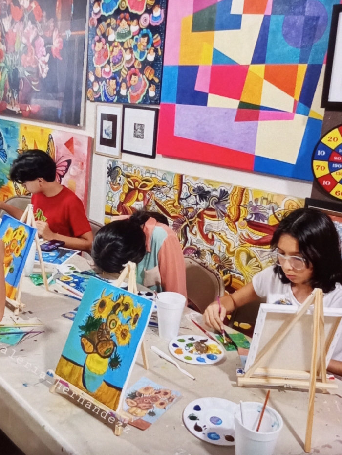 - "An indoor art workshop in Aktash, Uzbekistan, is depicted, showing three individuals engaged in painting activities at a light-colored table" by FM-1o2DD3, licensed under CC BY 4.0
