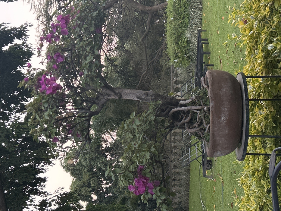 - "A bougainvillea bonsai rests in a large, weathered clay pot on a black metal stand" by FM-zurY33, licensed under CC BY 4.0