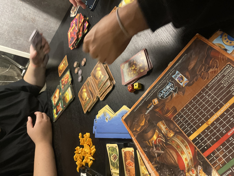 - "The image depicts an indoor scene in the Capital City of Prague, Czechia, showing three individuals engaged in a board game on a dark, flat surface, likely a table" by FM-dkxBn2, licensed under CC BY 4.0