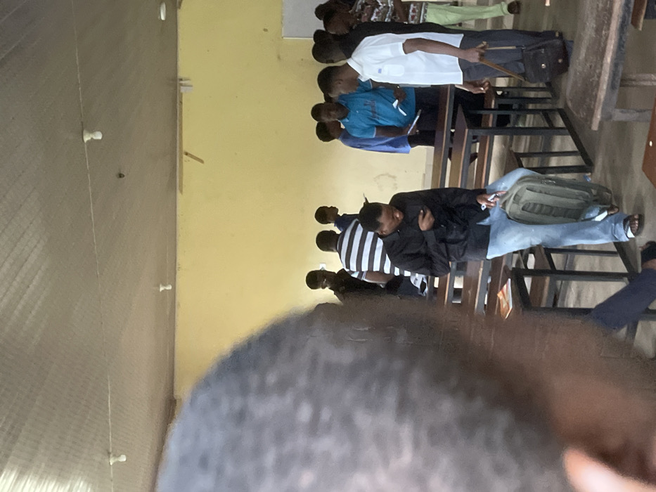 This image depicts an indoor scene in what appears to be a classroom or lecture hall, located in the city of Uturu, Nigeria