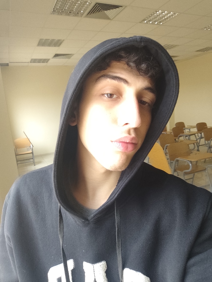 - "A close-up, chest-level selfie depicts a young male subject in what appears to be a classroom or lecture hall in Jibb as-Safa, Syria" by FM-BskwX2, licensed under CC BY 4.0