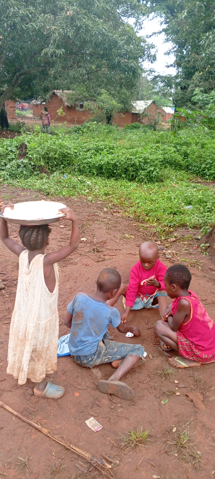 - "Four children are outside in a dirt clearing surrounded by greenery and simple buildings" by FM-Di9s03, licensed under CC BY 4.0