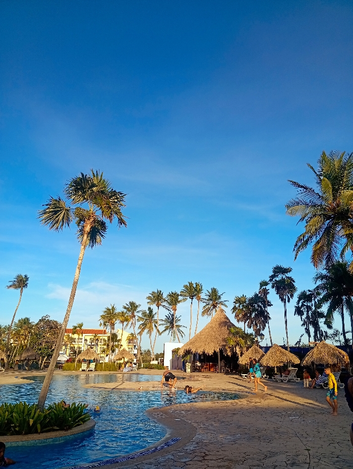 - "The image displays a resort pool area in Playa El Agua, Venezuela, under a clear, bright blue sky, suggesting late afternoon or early evening lighting conditions" by FM-xUvng2, licensed under CC BY 4.0